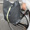 The clip-on system is adjustable for each bike. Turn the wheels to make the attachment clips larger or smaller. Adjust them to fit your rack. Once the clips are set, you can easily take the bag on and off your bike. When the bag is on your bike, pull the middle loop towards you. This ensures that your bag stays put while cycling. Furthermore, we’ve integrated a flat zip pocket which is ideal for smaller items such as pocket change & keys. The reflective-neon ribbons and reflective tape on the side will make you visible day and night.